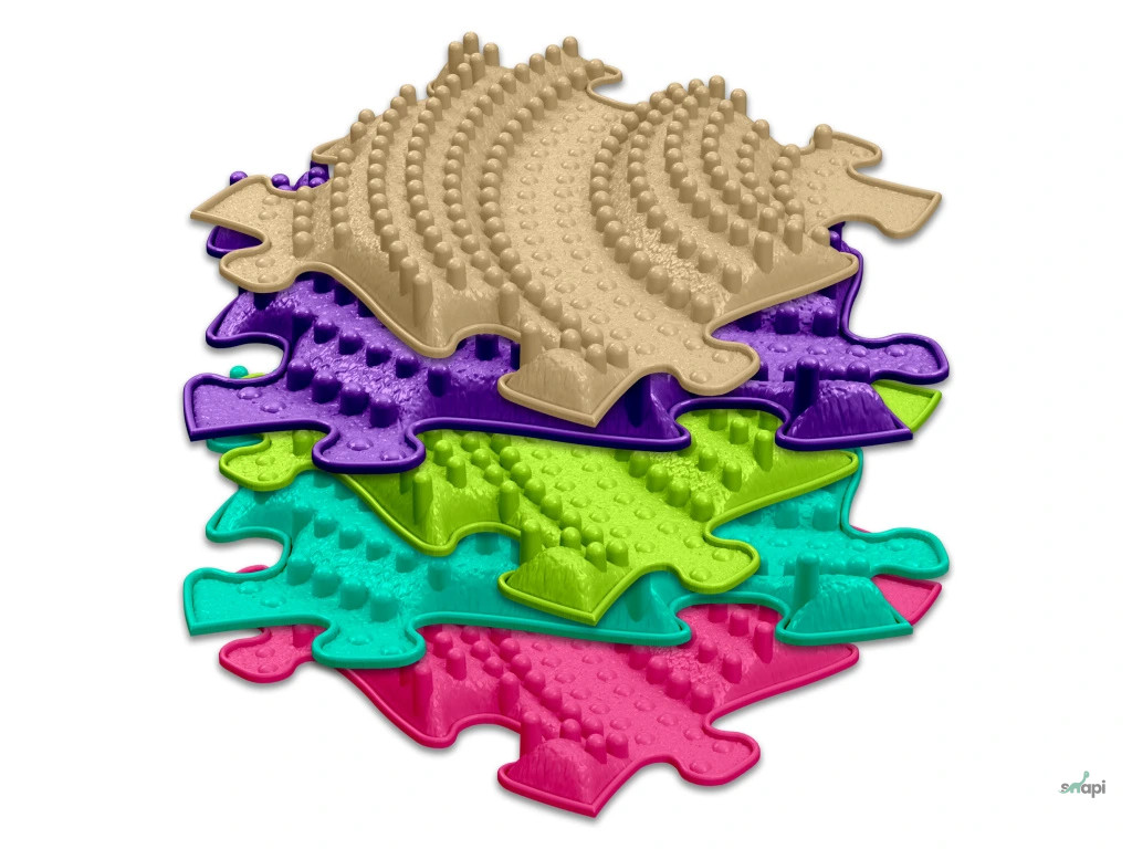Kövek, fatörzs, fű, kavicsok, kagylók várják, hogy rajtuk lépdelve felfrissüljetek. Közismert, hogy mezítláb járkálni különböző formájú valós elemeken jót tesz a talpnak, illetve a bokának. Biztos éreztétek már, hogy nyáron a strandon a köveken vagy akár a fűben járkálni milyen remek érzés. A Muffik szenzoros ortopédiai szőnyeggel, most otthonotokba is elvihetitek ezt az élményt.