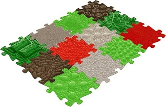 A MUFFIK szenzoros ortopédiai szőnyeg kirakódarabjait a természet elemei ihlették. Kövek, fatörzs, fű, kavicsok, kagylók – ezek mind megtalálhatók az egyes darabokon és annyira élethűek, hogy öröm rálépni.