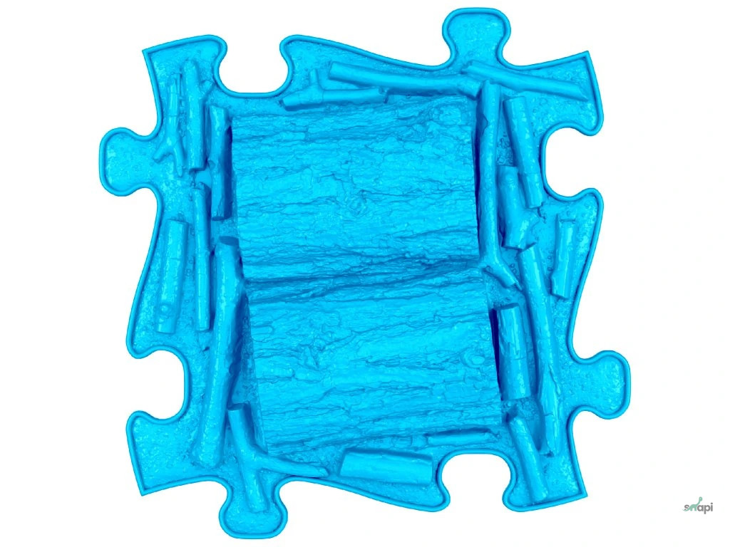 A MUFFIK szenzoros ortopédiai szőnyeg kirakódarabjait a természet elemei ihlették. Kövek, fatörzs, fű, kavicsok, kagylók – ezek mind megtalálhatók az egyes darabokon és annyira élethűek, hogy öröm rálépni.