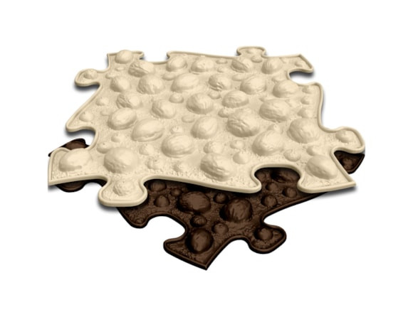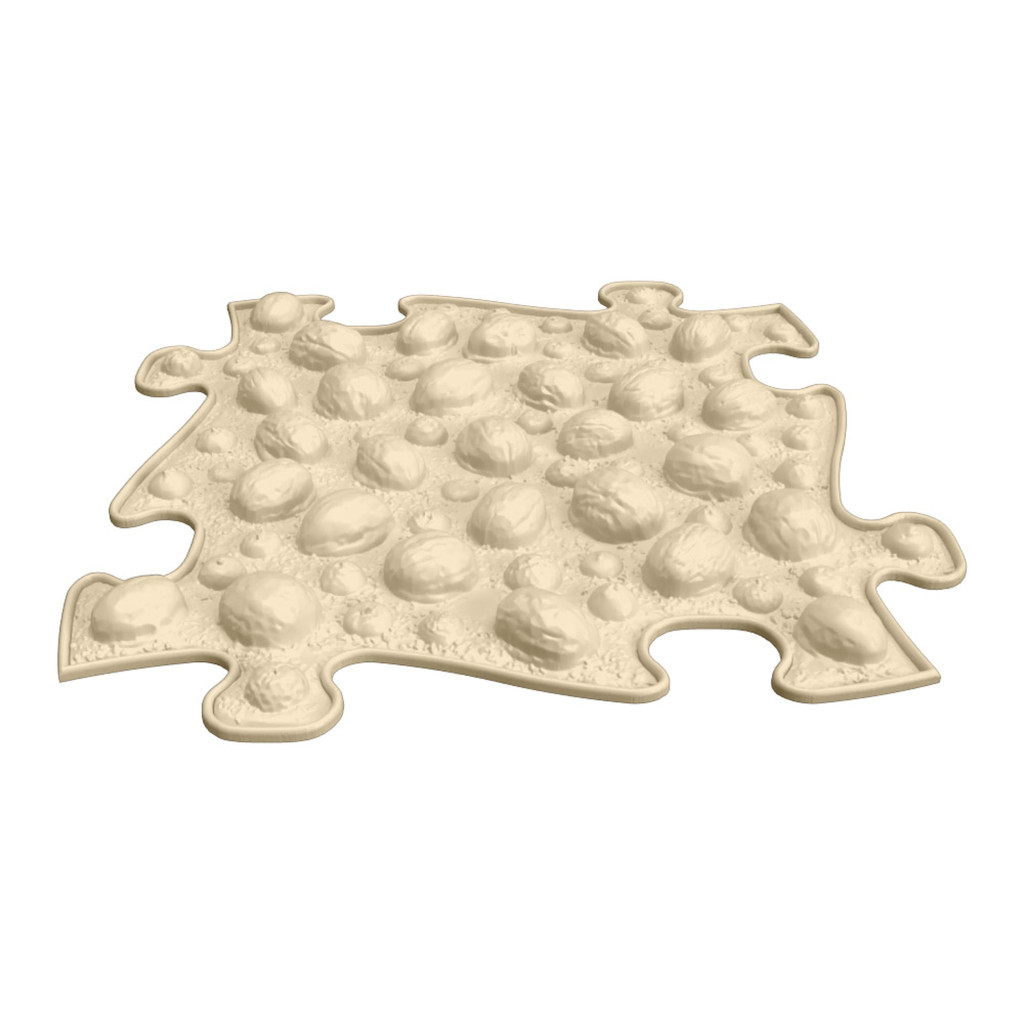 A  változatos méretű dióval feltöltött puzzle intenzíven masszírozza a láb minden milliméterét és maximalizálja a vérkeringést. A felület változatossága és keménysége erősíti a kezdő sétálók lábfejét, bokáját, térdét és testközépét. Nagyobb gyerekeknél ez stimulálja a lábfejet, és szépen fejleszti a láb hosszanti és keresztirányú íveit. Felnőtteknél elősegíti a vénás gimnasztikát, ami fontos a trombózis és a visszér elleni küzdelemben.