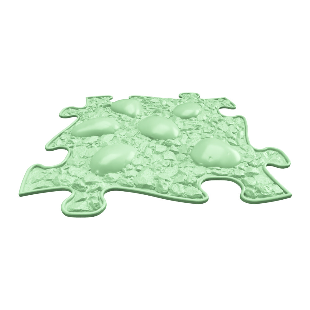 A MUFFIK szenzoros ortopédiai szőnyeg kirakódarabjait a természet elemei ihlették. Kövek, fatörzs, fű, kavicsok, kagylók – ezek mind megtalálhatók az egyes darabokon és annyira élethűek, hogy öröm rálépni.