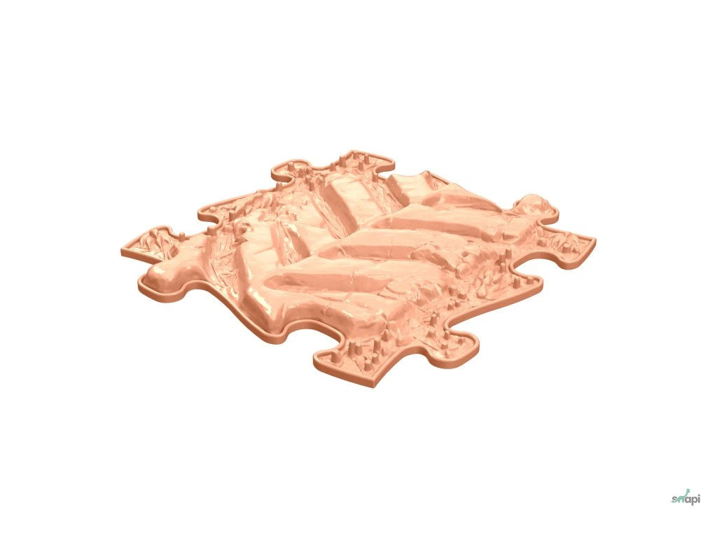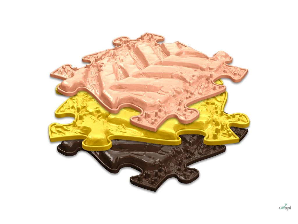 A MUFFIK szenzoros ortopédiai szőnyeg kirakódarabjait a természet elemei ihlették. Kövek, fatörzs, fű, kavicsok, kagylók – ezek mind megtalálhatók az egyes darabokon és annyira élethűek, hogy öröm rálépni.