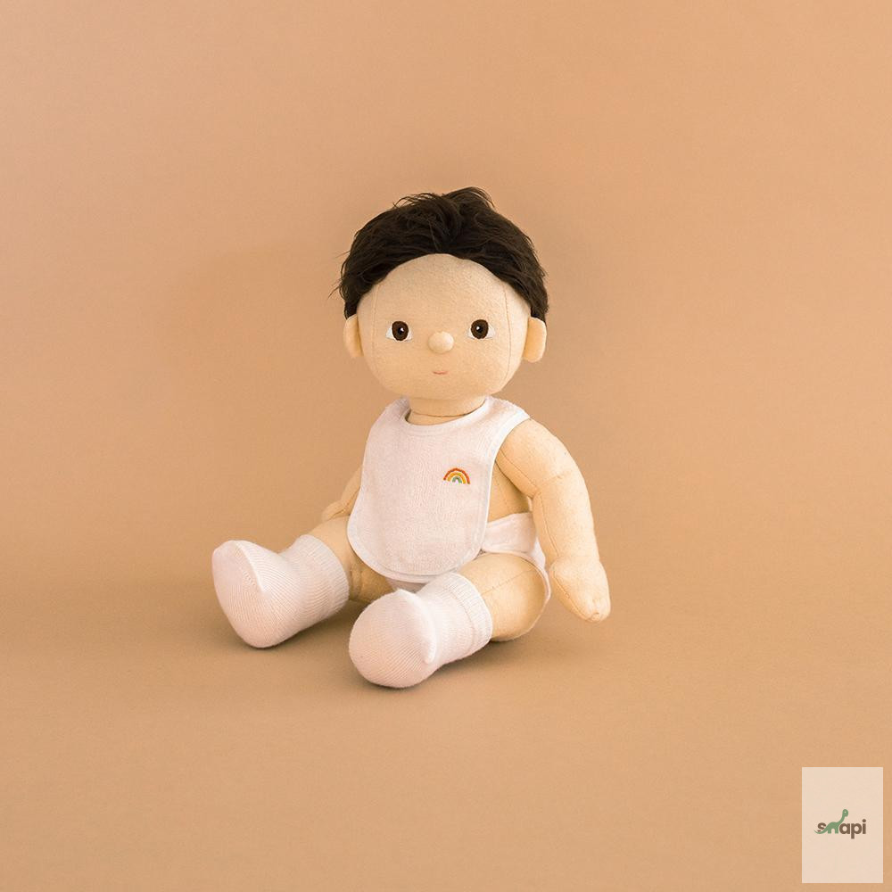 A világ minden táján a Dinkum babák készen állnak  a gondoskodásra apró babaápoló készletünkkel.  Cseréld ki  őket  egy új pelenkára,  töltsd fel zoknijaidat  és kerüld el a rendetlenséget étkezéskor  egy  egyedi hímzett előkével  – a  szíve fölött a Dinkum baba szivárványával