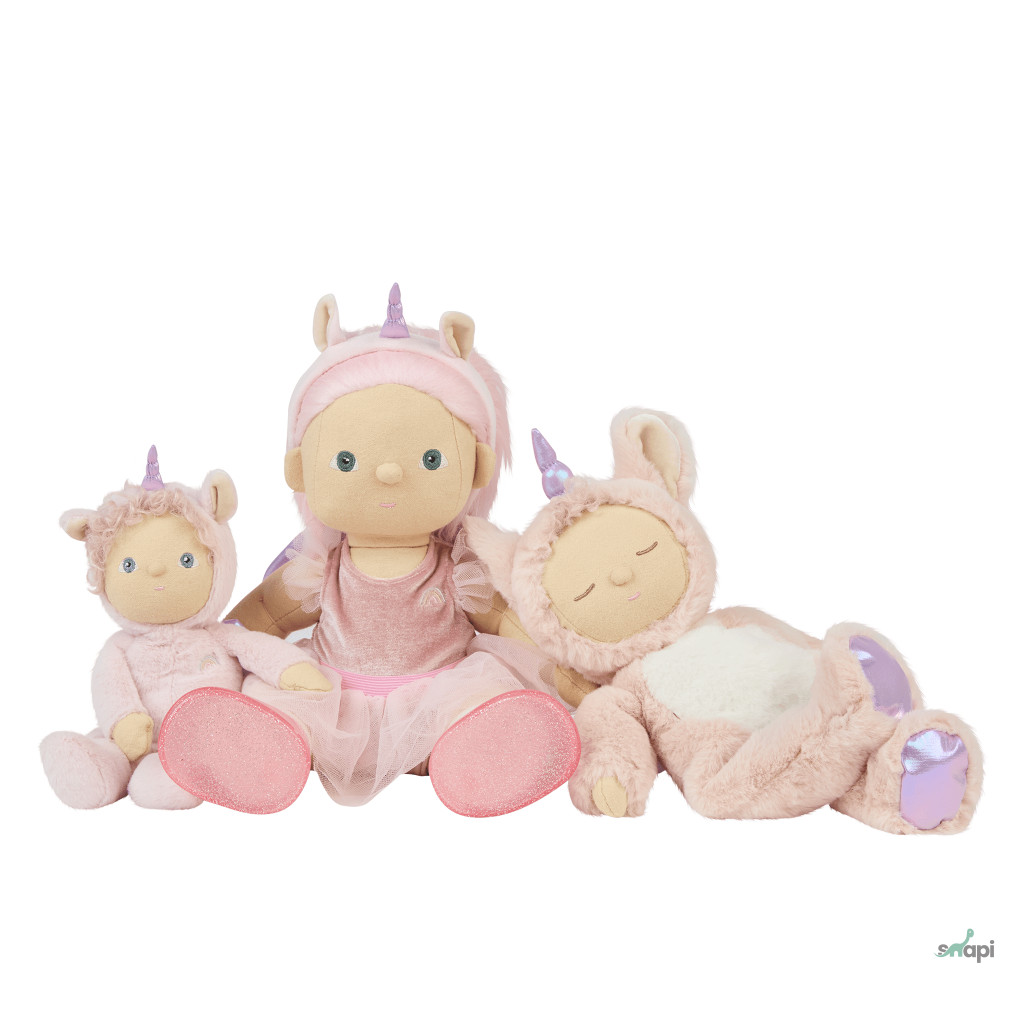 - Dream Dinkum baba bársony elvitelre szánt dresszben, fix csillámos tüll tutuval és plüss, irizáló szárnyakkal, unikornis baba fejpánttal, zoknikkal és csillogó cipőkkel érkezik.