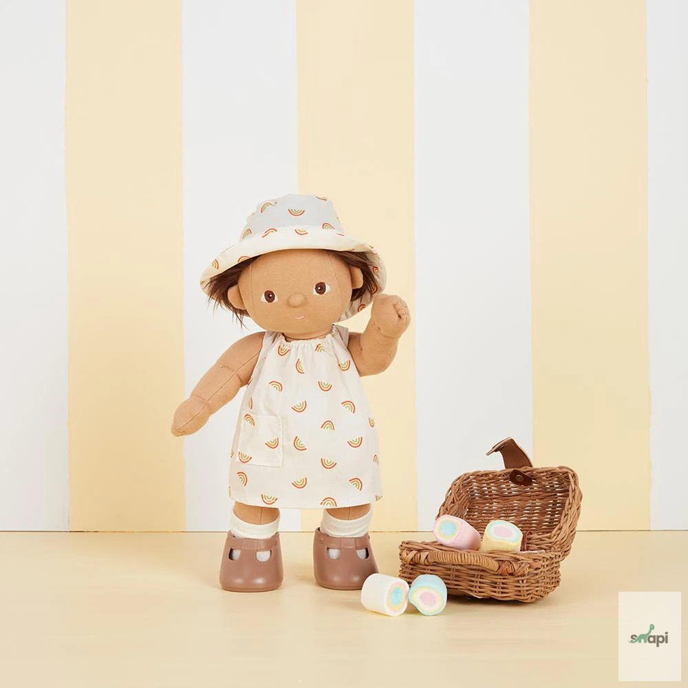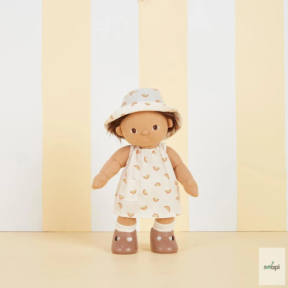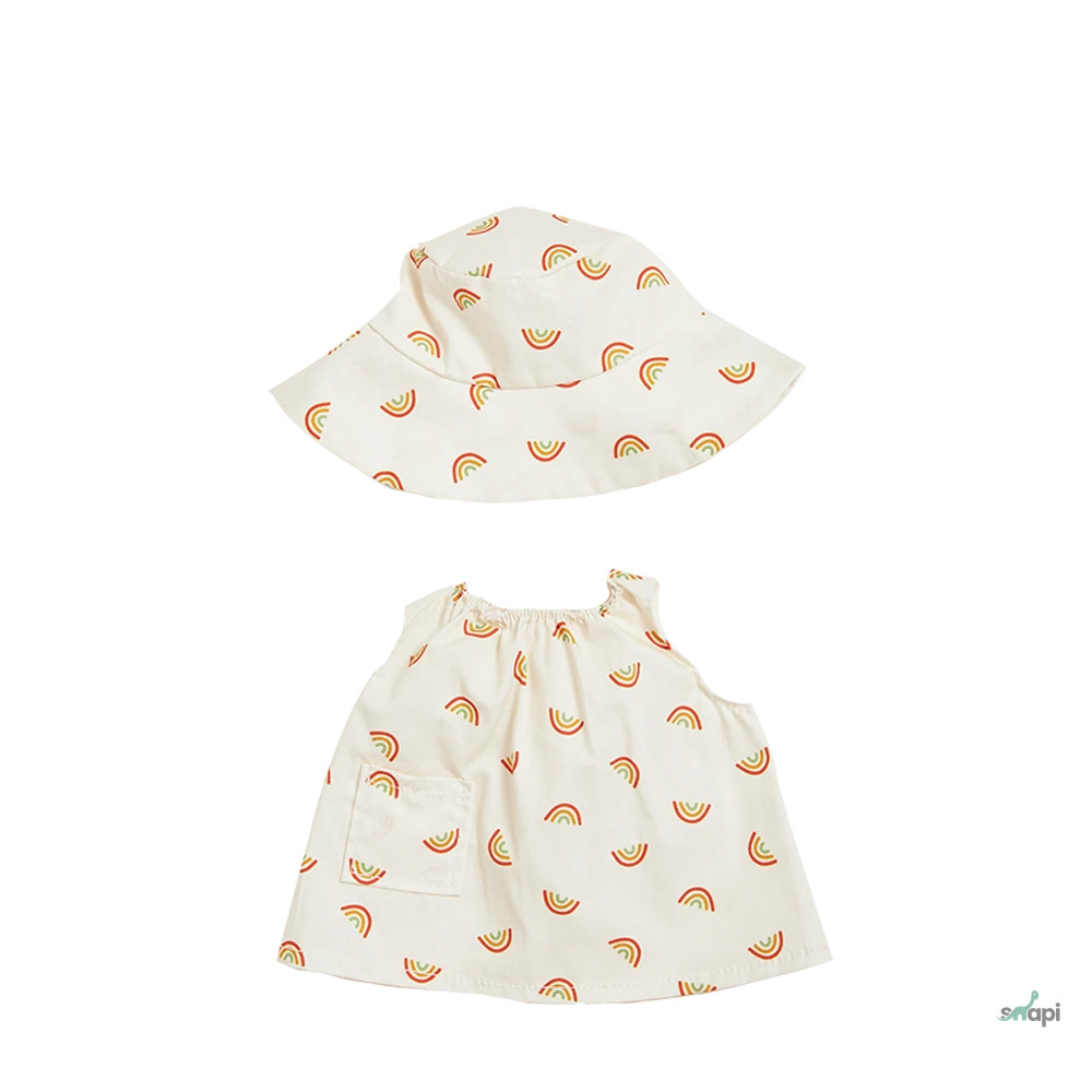 Az Una Szivárvány ruha  szett a hozzá illő kalappal a legbájosabb összeállítás a napsütéses Dinkum baba kalandokhoz! A gyerekek imádni fogják, ha Dinkum baba legjobb barátjukat kalapba öltöztetik a napsütésben biztonságos játék a szabadban {mert a legjobb barátok mindenhová elmennek és mindent együtt csinálnak}.