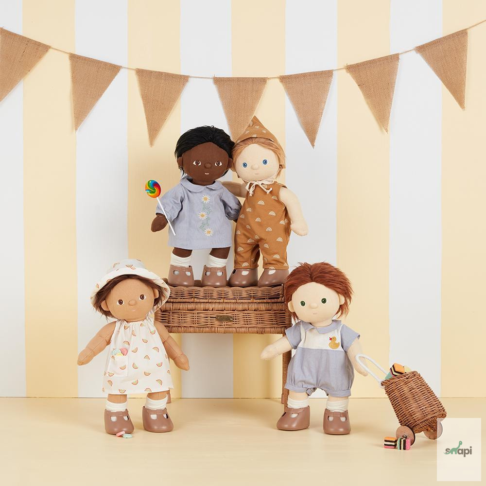 A Dinkum babák imádják megosztani a barátaikkal a ruháikat – minden  Dinkum baba jelmez  kompatibilis más  35 cm-es babákkal.