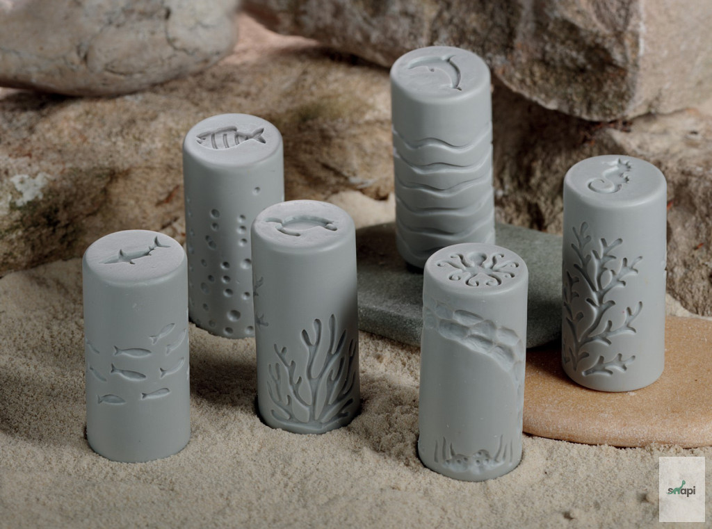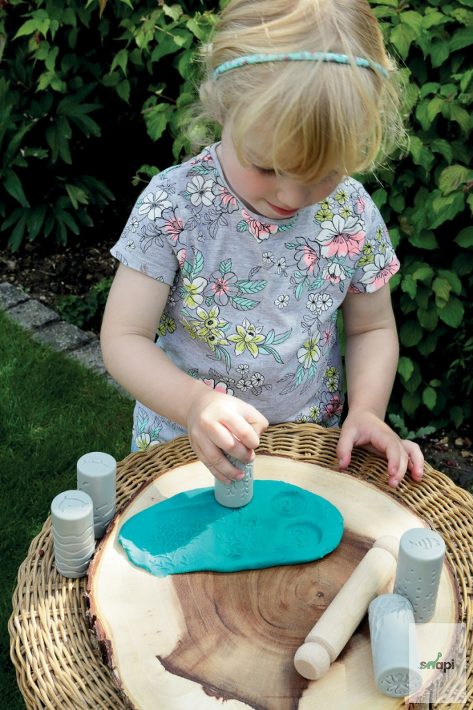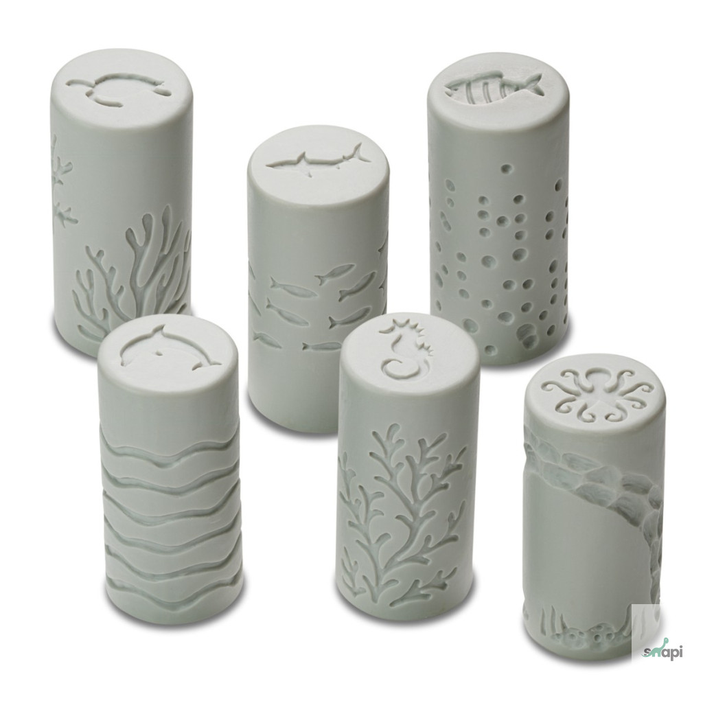 Fedezd fel az értékes és csábító óceáni élőhelyeket ezzel a kreatív hengerkészlettel. Hamarosan hullámokat fogsz kelteni, miközben gyurmába vagy agyagba görgeted a játékot, és a bélyegzők segítségével életre kelted a vizet különféle tengeri élőlényekkel. Számold meg a vízben merülő delfineket, kövesd a halakat a buborékokon keresztül, és alkoss tapintható történetmeséléseket a teljes szereplőgárdának! Miért ne használnád ezt az eszközt ugródeszkaként érdekes tények és új szókincs elsajátításához? A gyerekek újra és újra gyakorolhatják a különböző nyomáserősségek használatát és a hengerlés különböző módjait.