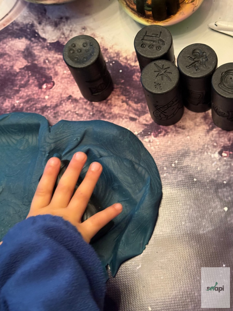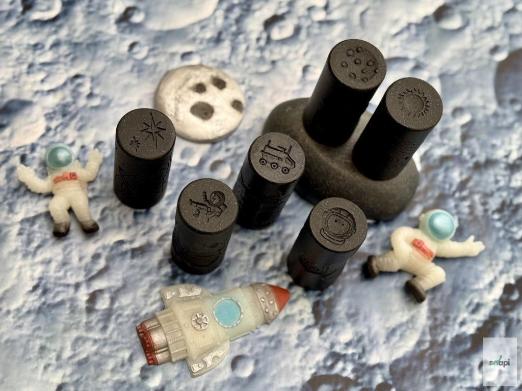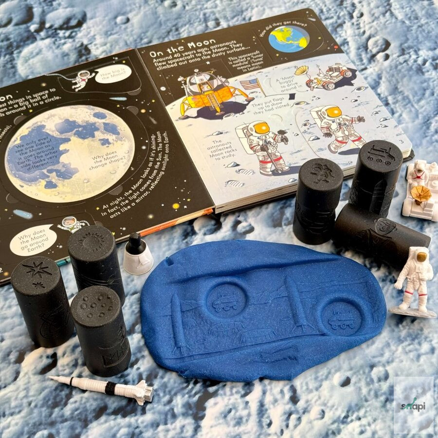 A gyerekek űrhajós expedícióra indulhatnak, miközben a gyurmába gurulnak és taposnak, hogy lenyűgöző tapintható jeleneteket tárjanak fel, többek között űrhajósokat, rakétaindításokat, űrsétákat és egyebeket. Ez a készlet tökéletes a beszélgetések elindításához, segít a gyerekeknek megismerni a Föld és más bolygók közötti különbségeket, az űrutazás fontosságát, és azt, hogy ez hogyan gazdagítja a világról alkotott ismereteinket. Játékon keresztül a gyerekek elmélkedhetnek a Föld szépségén, és felfedezhetik, hogyan gondoskodhatnak róla.