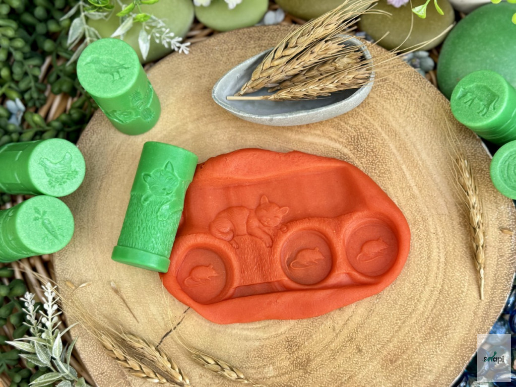 A görgőkre nehezedő nyomás változásával és a gyurmában, agyagban vagy homokban való különböző irányokba görgetéssel kísérletezve a gyerekek fejleszthetik finommotoros készségeiket, tapintható mezőgazdasági képeket alkotva, amelyeket kiegészíthetnek a bélyegzők használatával. Pakolj szénabálákat a traktor utánfutójára, ültess sárgarépát a földbe, és tedd be a tyúkokat a tyúkólba.